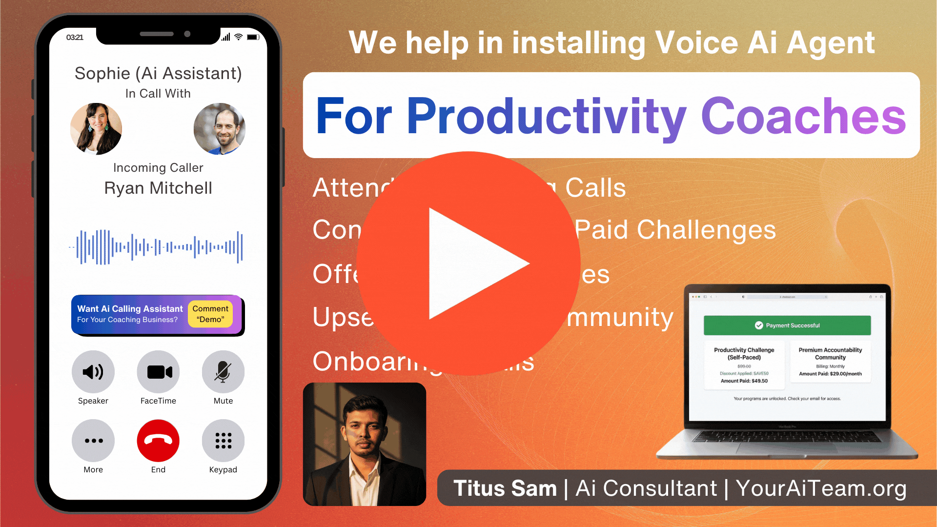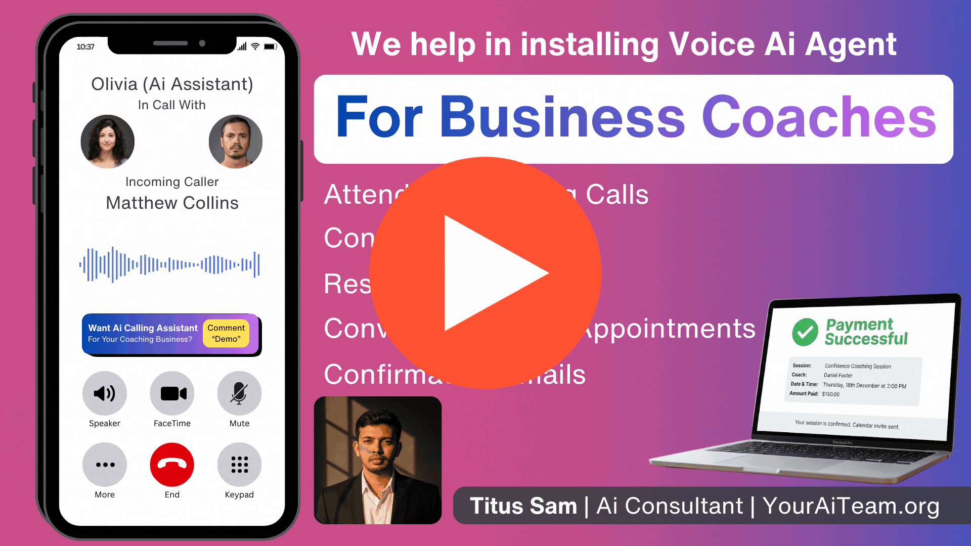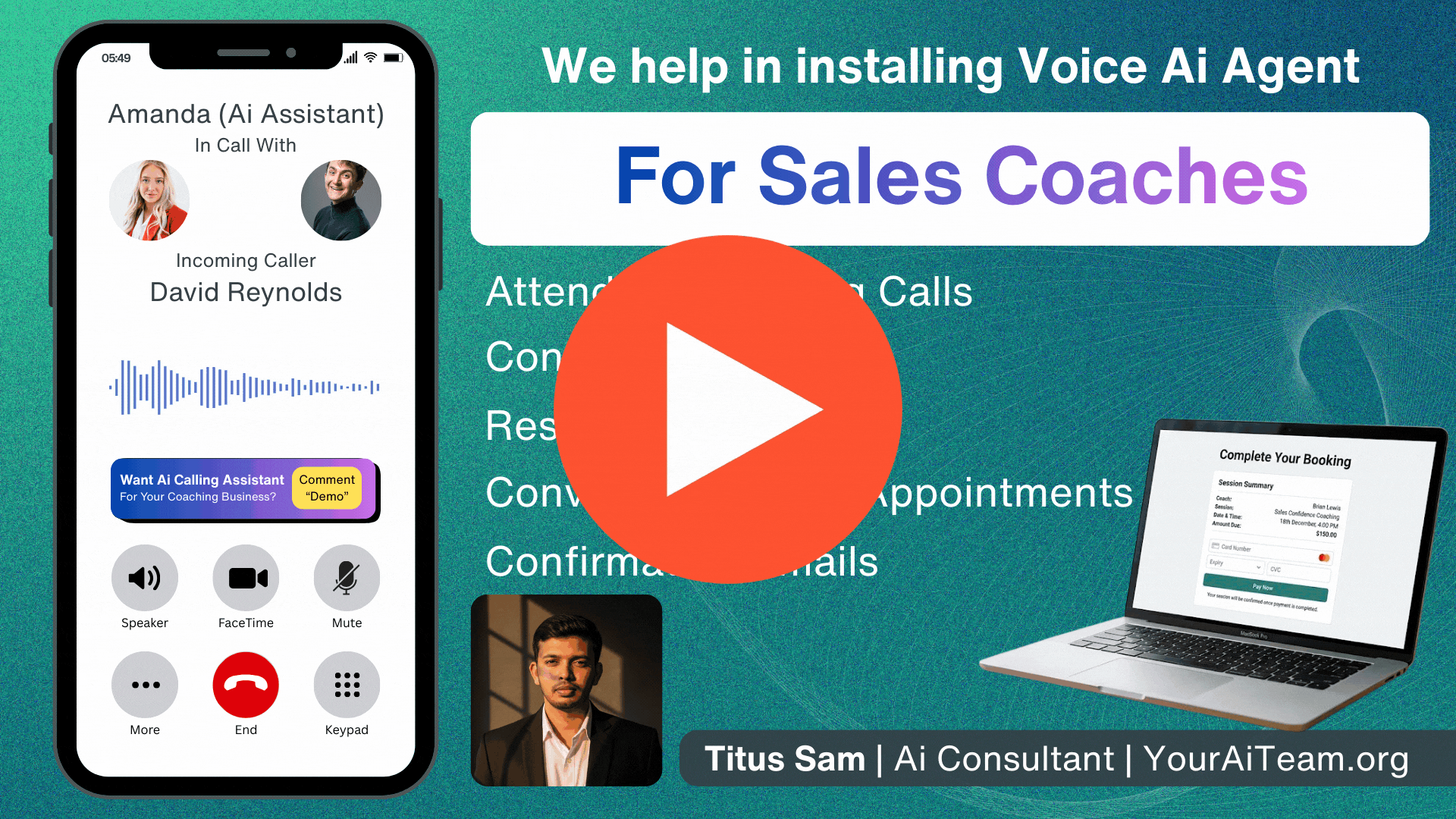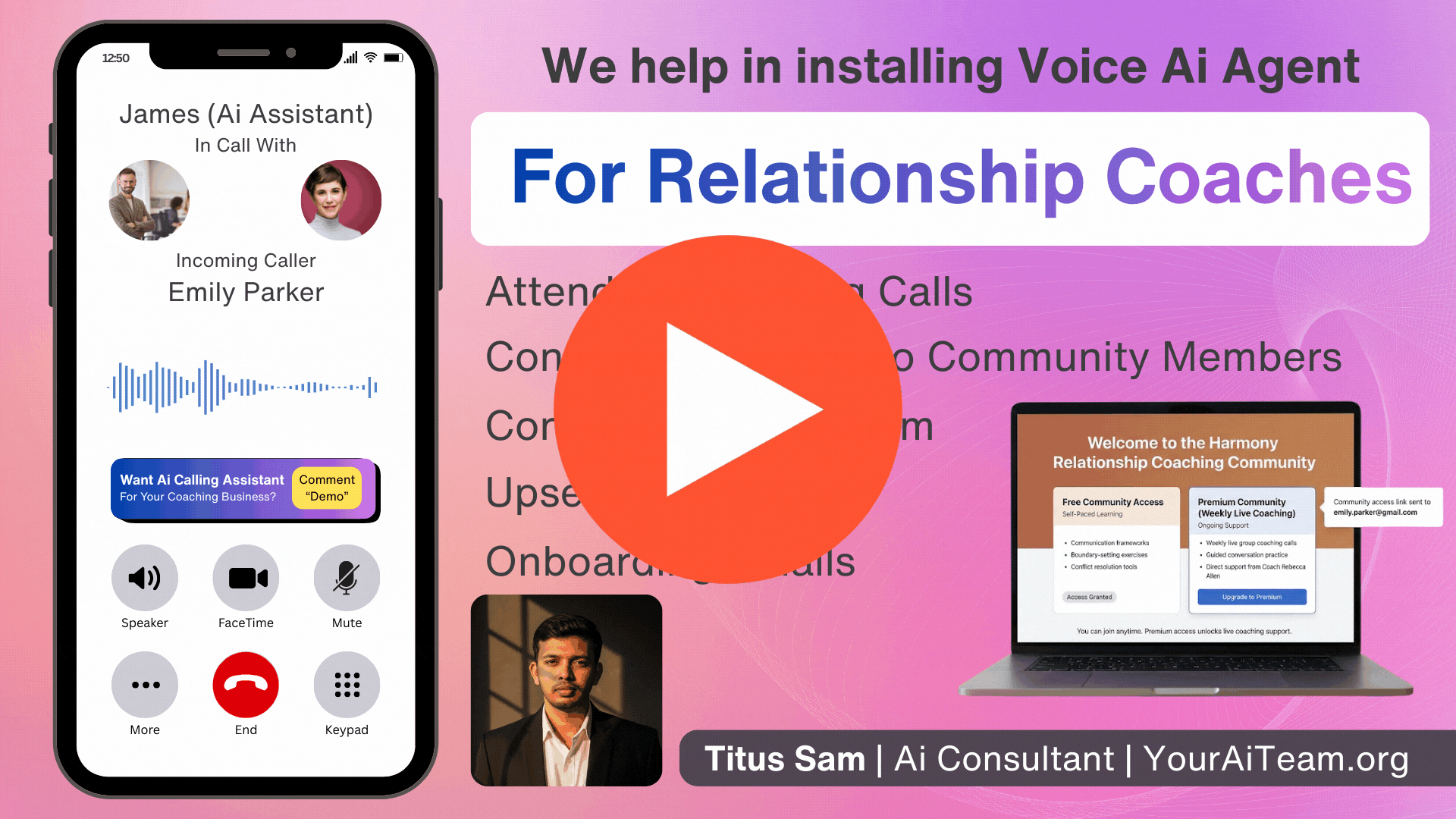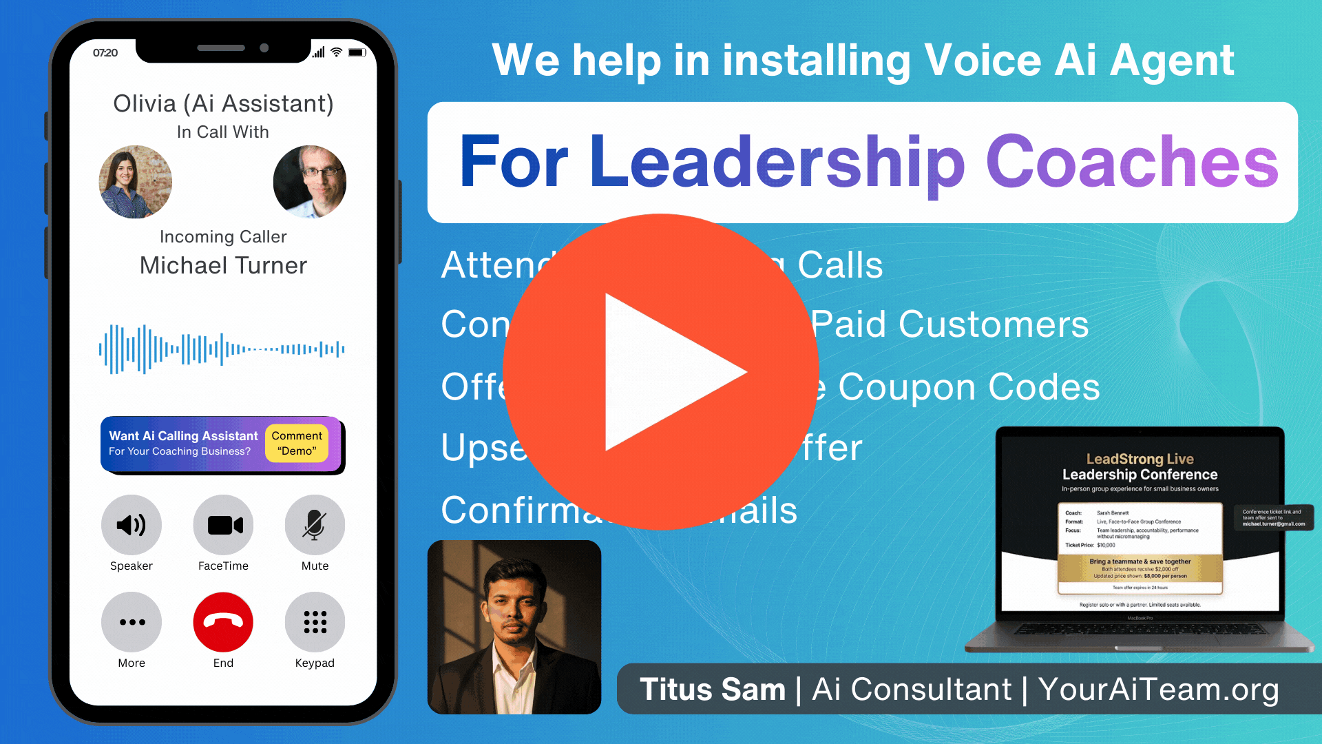 Let Ai Agents answer every call, qualify every lead, book coaching sessions, sell courses and offer promotion campaigns — without interrupting your coaching or your personal life.